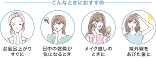超微細ミストで、お風呂上りや洗顔直後の導入スキンケアはもちろん、日中の水分補給にも使えます。