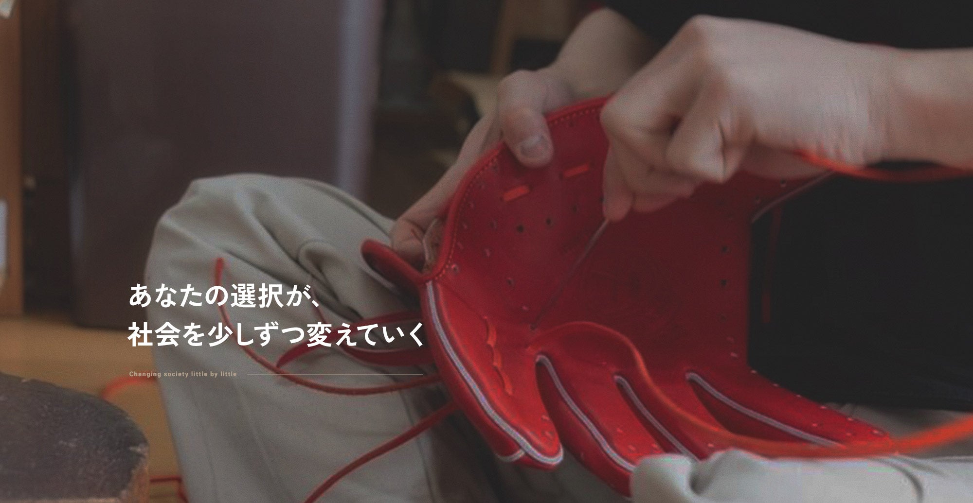 革の裁断や組み立て、ボタン付けといった、製品の品質を左右する重要な工程を多くの障がい者福祉施設に担ってもらっています。野球グローブの端革は、形や厚みが一枚ずつ異なるため、機械化が難しく、人の目による判断と丁寧な手仕事が欠かせません。
