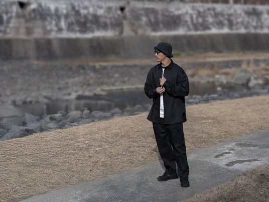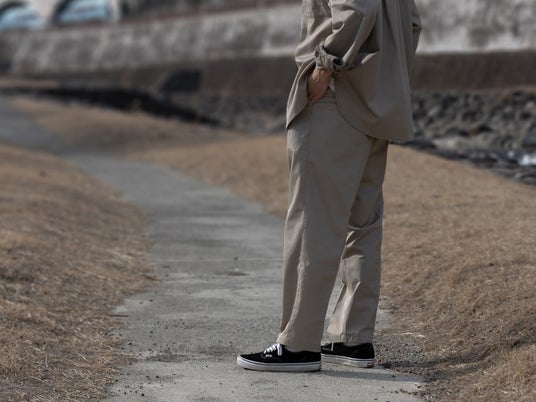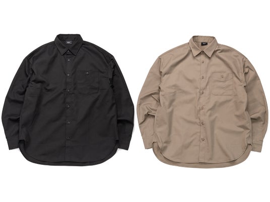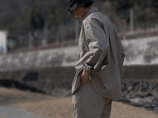 同素材で展開するシャツとパンツは「ブラック」「ベージュ」の2カラー展開、セットアップでの着用も可能。