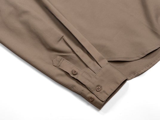 やや広めに設計したヨークやセンターボックスプリーツにより、堅さを感じさせず、動きやすく立体的なシルエットに。ボタンにのみロゴを配したミニマルなデザインと、さりげない補強ディテールもポイントです。