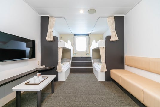 2段ベットの他人数部屋になりますが、ベットは向かい合わせではないので、相部屋感は少ないです。