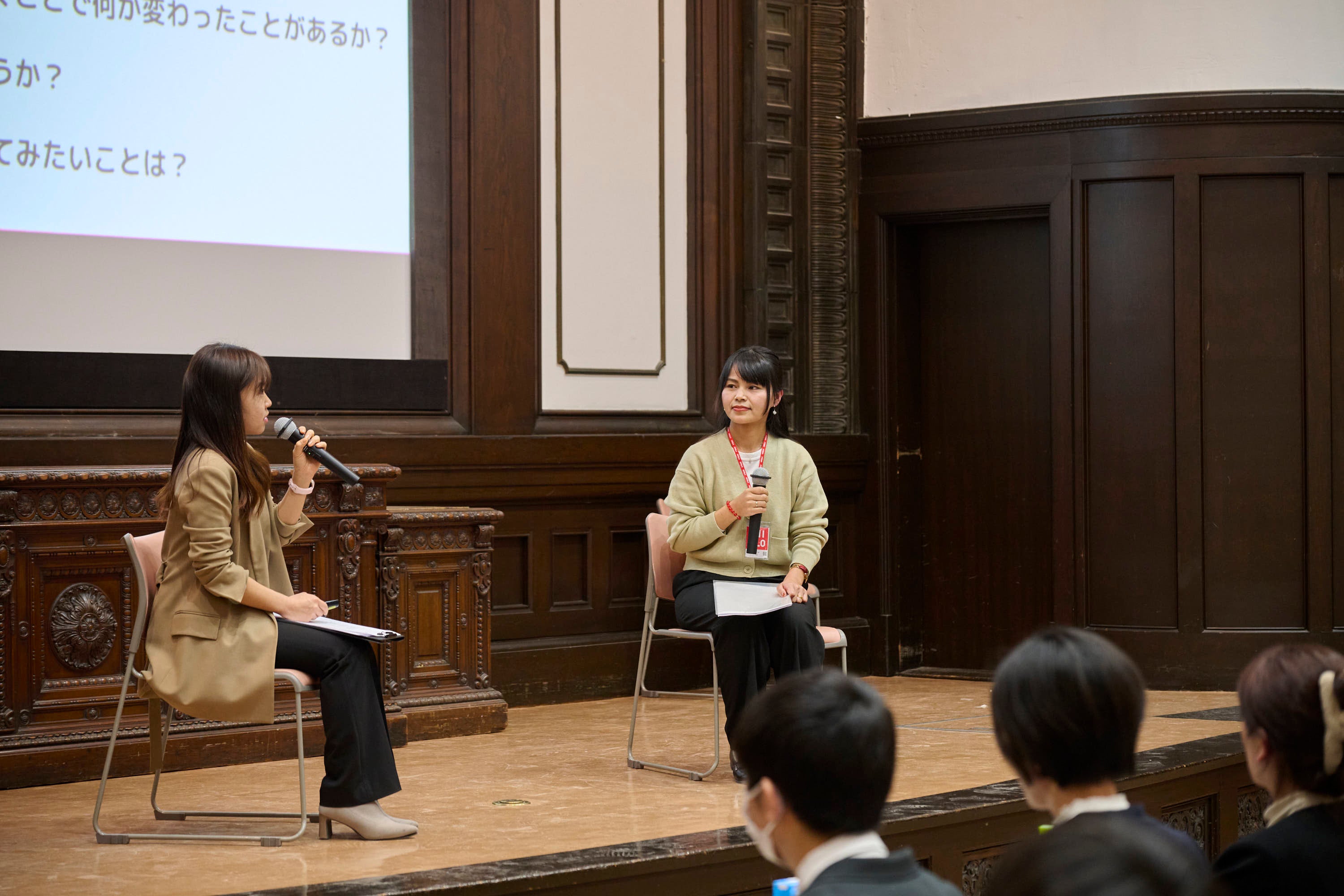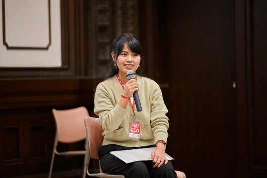 プレゼンテーション終了後、ミャンマー出身で難民として2017年に来日し、2018年よりユニクロで働くニン・サン・ホイさんをゲストに迎え、トークセッションを行いました。