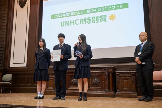 さらに、UNHCR特別賞には新潟県立村上桜ケ丘高等学校が選ばれ、審査員からは「“ヒーロー”という親しみやすく分かりやすいキャラクターを用い、工夫を凝らして次の世代にもメッセージを届けてくれました。非常に意義のある活動になっていたと思います。」とコメントがありました。