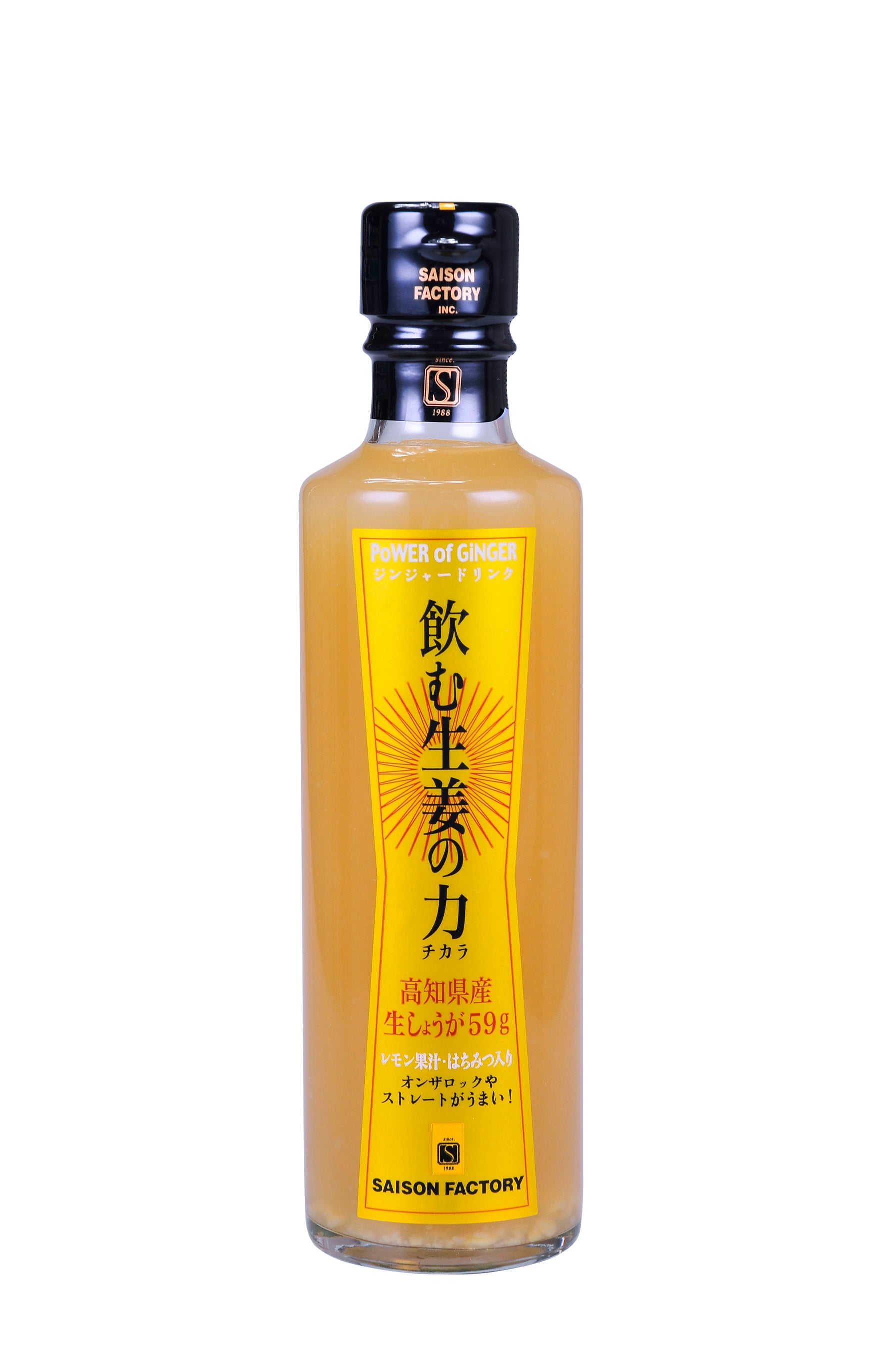 高知県産大生姜を手搾りし、はちみつとレモン果汁だけで仕上げたシンプルなドリンク。