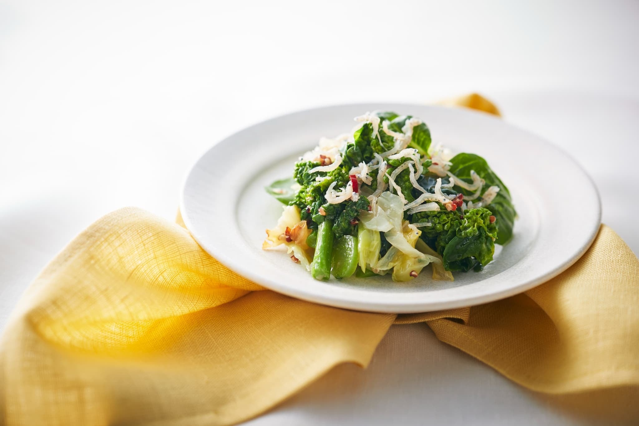菜の花に焼いたキャベツの甘みとちりめん、アンチョビの旨味が好相性!