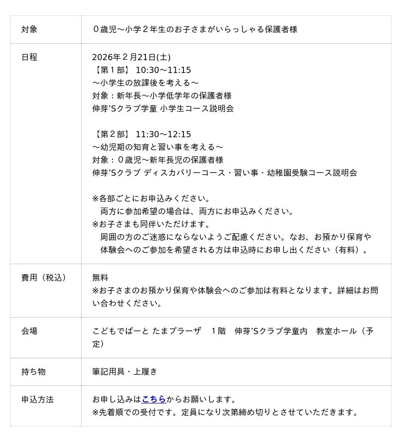 【日程】2026年2月21日(土) 【対象】0歳児~小学2年生のお子さまがいらっしゃる保護者様