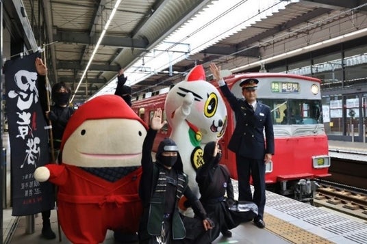 名古屋鉄道と連携して、忍者隊と「忍者フー」、常滑市のマスコットキャラクター「トコタン」による列車のお見送りを実施します。
