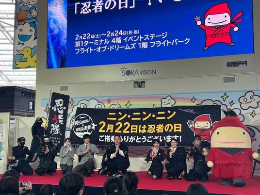 2月22日は「ニン・ニン・ニン」と「ニャン・ニャン・ニャン」の日!「徳川家康と服部半蔵忍者隊」と「忍者隠密隊」そして招き猫で有名な常滑市のマスコットキャラクター「トコタン」が空港を盛り上げます!
