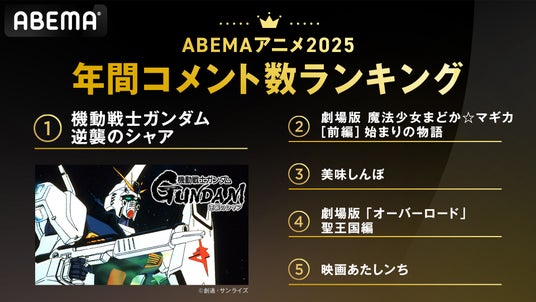コメント数ランキングでは『機動戦士ガンダム 逆襲のシャア』が1位を獲得 定番作から新作まで多様な作品が並んだ一年に