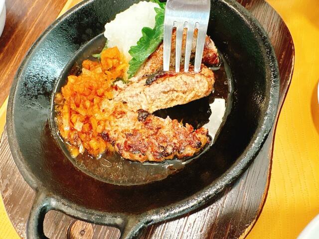 ポイントは、たっぷりの大根おろしとオニオンソース。このおかげで、約135gのジューシーなハンバーグも驚くほどさっぱり食べられちゃうんです。