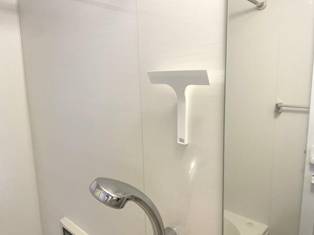 「届きづらい壁の上の方や天井もスムーズに水が切れるし、お風呂で温まった体をできるだけ冷やさずに、サッと作業を終えられるのがいい!」と魅力を教えてくれました。