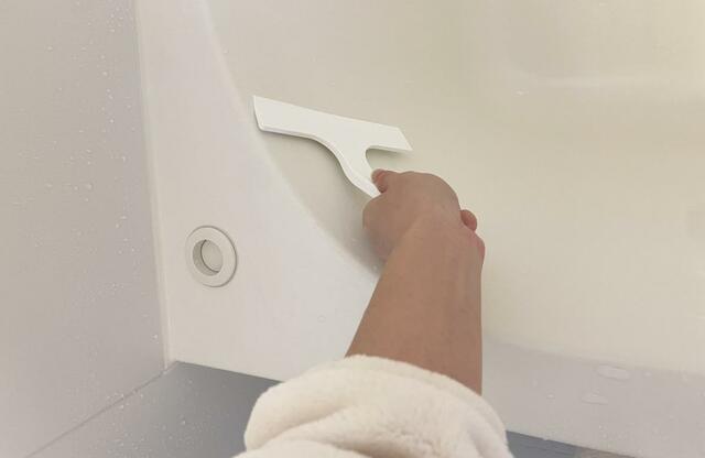 素材はシリコーン製だから壁や鏡にピタッと密着し、カビや水アカの原因になる水分を一気に気持ちよく拭えます。