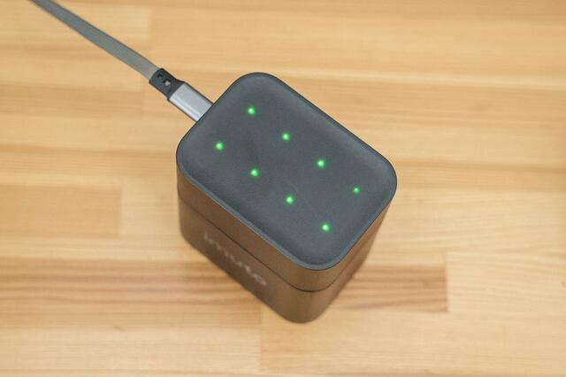 側面にUSB-Cポートがあるので、電池が入った状態でケーブルを挿せば充電が開始され、LEDインジケーターが表示。充電状況をすぐ確認できます。