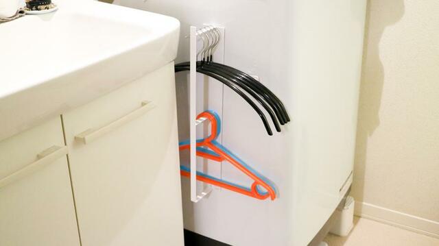 そこで出合ったのが、山崎実業の「マグネット洗濯ハンガー収納ラック」。マグネット式で洗濯機に貼り付けられるので、洗濯したらすぐに手に取れる場所に設置ができます。