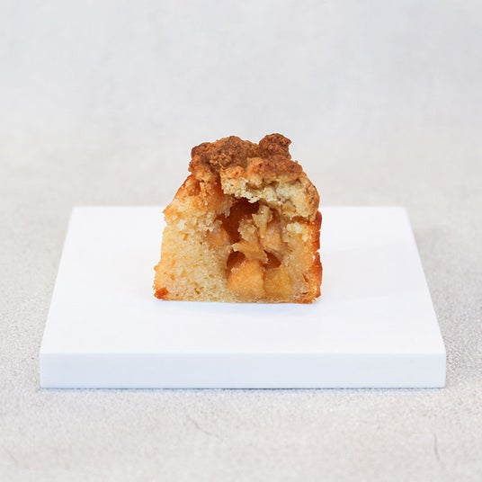 白みそのやさしいコクを生地に練り込み、甘さの中にほんのり塩味を感じる、奥行きある味わいのフィナンシェケーキです。中には、大きめにカットして果肉感を残した「自家製セミドライりんごジャム」を忍ばせました。 白みその塩味とりんごの甘酸っぱさがクセになる味わいで、ひと口ごとにジューシーな果実感が広がります。トップに飾った米粉クランブルのザクザクとした食感がアクセント。コーヒーや紅茶と一緒に、ゆったりとした時間をどうぞ。