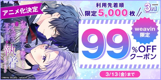 【アニメ化&出版社weavin3周年記念!99%OFFクーポン】キャンペーン実施中!