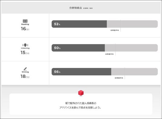 (2)英検(R)公式Web:正答数(素点)画面(画像)