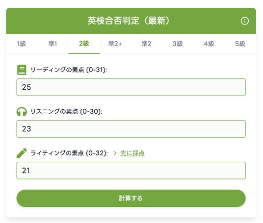 - CSEスコア予測(合否判定)は推定であり、英検(R)公式の採点・合否を保証するものではありません