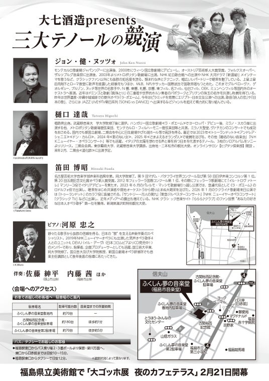 2026(令和8)年5月9日(土)、ふくしん夢の音楽堂 大ホール(福島県・福島市音楽堂)にて大七酒造presents「三大テノールの競演」を開催いたします。