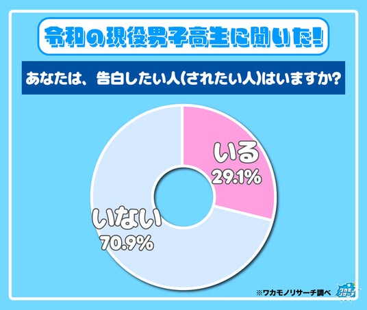 続いて、男子高生の調査を見ていくと、29.1%の男子高生が「いる」と回答。約3割の高校生がバレンタインのこの時期に告白したい(されたい)という結果に。