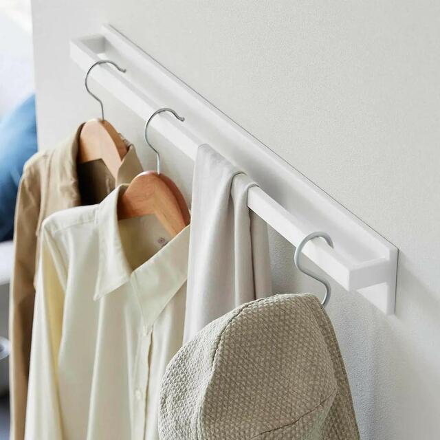 山崎実業の「壁付けハンガーバー」は、石こうボードピンで好きな場所に設置できる優れもの。