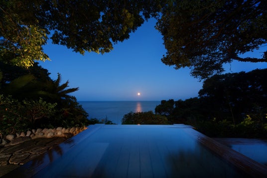 静かな海沿いの北川(ほっかわ)温泉の高台から、海に昇る朝日と、満月が描く光の道「ムーンロード」を望む、全室オーシャンビューの大人の隠れ家リゾート。客室やレストラン、露天風呂から、空と海の青が溶けあうような絶景をご覧いただけます。