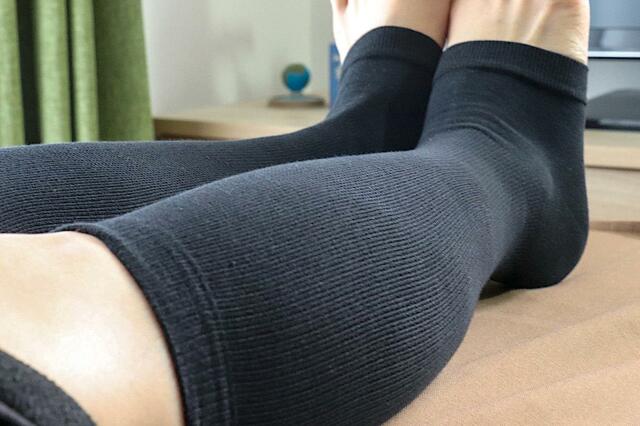 着圧ソックスというと、履くのも大変なくらい圧がかかるものをイメージしていましたが、こちらはしっかり伸びるので、履くときの苦労がありませんでした。