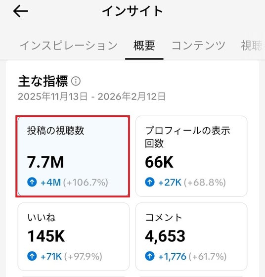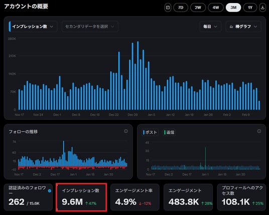 xのインプレッション数(2025/11/17~2026/2/14 自社調べ)