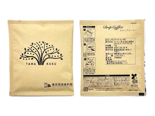 横浜開港資料館は、安政元(1854)年のペリー提督の横浜上陸を見守り、横浜開港のシンボルツリーとして多くの市民に親しまれている「たまくすの木」をモチーフにしたオリジナルグッズの第2弾としてオリジナルデザインドリップパックコーヒーを制作しました。