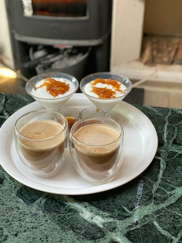 protein、ヨーグルト+マーマレード、今日の元気、café au lait。
