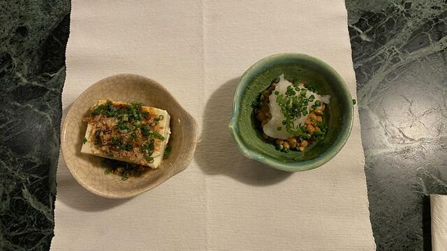絹豆腐(冷奴)、納豆と大根おろし。