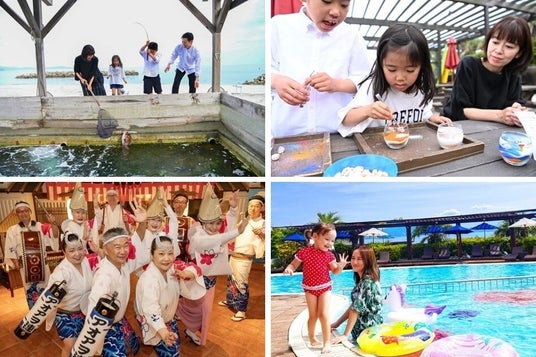 ホテル内では、鳴門鯛など、季節の活魚を釣り堀から釣り上げる体験をはじめ、キャンドル作りや貝殻のフォトフレーム作りが楽しめるアート工房など、有料体験プログラムが充実しています。さらに、毎晩開催される「阿波踊り公演」は観覧無料。遊びやグルメ、絶景まで一度に満喫できるリゾートホテルです。