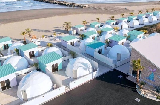 茨城県・大洗町の「Sugar Beach Oarai」は、海まで0秒のロケーションが魅力のオールインクルーシブ型グランピング施設。