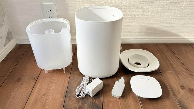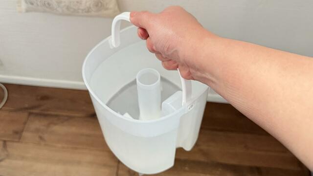 水を満タンにしてもタンク単体なので重すぎず、注ぎ口も広め。水をこぼしにくく、給水時の気遣いがほとんど不要です。タンクに取っ手がついているのもいい感じ。「加湿器=給水が面倒」という印象が、この一点でかなり変わりました。