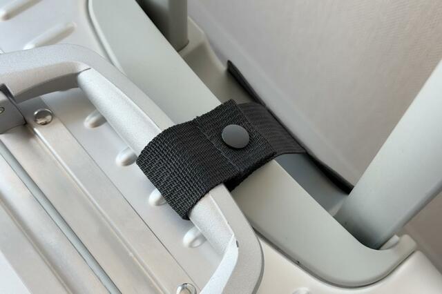 はじめにキャリーケースのハンドル部分に、バンドの端をスナップボタンで留めます。