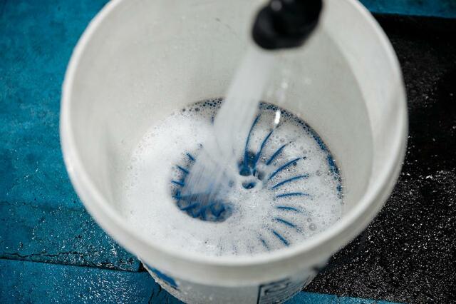 もう1つのバケツはスポンジのすすぎ用なので、ただ水を溜めておけばOK。