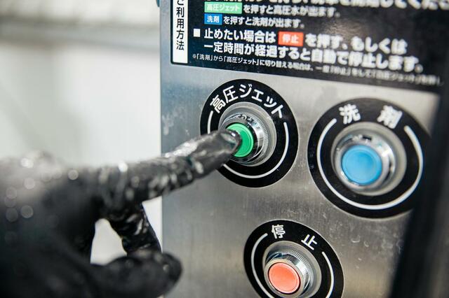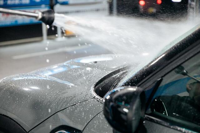 メインで使う高圧洗浄機のほか、洗車ブースの両サイドからも水を出せるのでボンネット周辺もちゃんと洗い流せます。