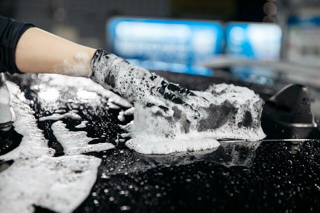 こうすることで車に優しい「ふわふわ・もこもこ・とろとろの泡」ができあがるので、どんどん泡立てていきましょう。