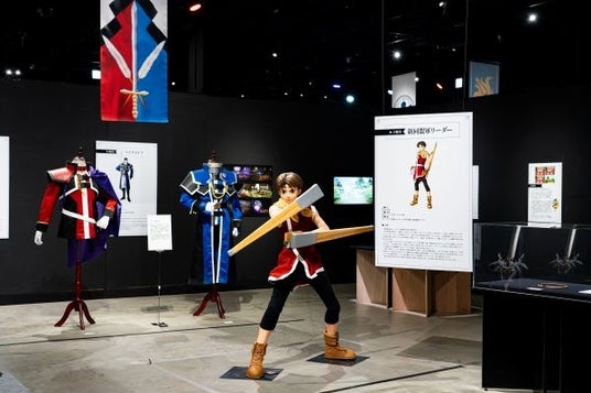 本展覧会では、2025年3月にHDリマスター版(『幻想水滸伝 I&II HDリマスター 門の紋章戦争 / デュナン統一戦争』)が発売された『幻想水滸伝I』と、その3年後を描いた『幻想水滸伝II』の2作品にフォーカスし、“「幻想水滸伝」世界の中にある架空の博物館”をコンセプトに、館内には、“キャラクターが実際に使用・着用した武器や衣装を収蔵した博物館”として、多数の立体展示品を展示。また各作品に登場する複数キャラクターの等身大立像とともに振り返る名シーンフォトスポットや、イラスト原画・一部初公開を含む貴重なストーリー資料も公開します。