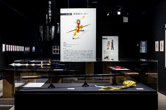 キャラクターが実際に使用・着用していた武器や衣装、小物などを多数展示。積み重ねられた時間の長さや、数々の戦いをリアルに感じられる展示品が並びます。