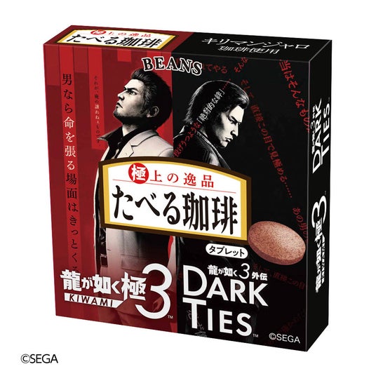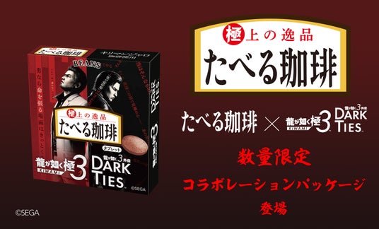 『龍が如く』の大人な世界観と、深みのある苦みと珈琲の香りが楽しめる“極”上の逸品「たべる珈琲」をリンクさせた数量限定パッケージとして発売いたします。