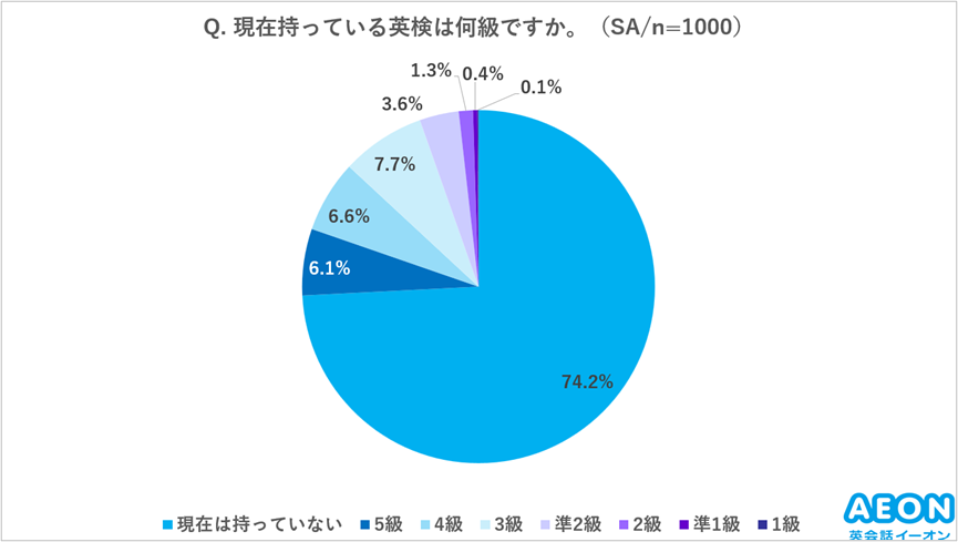 (3)74.2%のお子様が、現在英検(R)の級を取得していない。