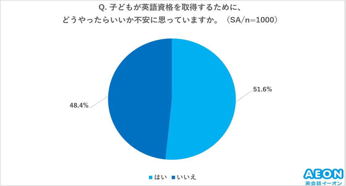 お子様の将来のために早くから英語を学ばせたいとお考えの保護者は多く、また、小学3年生から英語が必修となったこと、中学受験への英語採用などでその必要性も高まっており、英検(R)等資格取得に向けてもニーズが高くなっています。2025年6月にイーオンにて4歳から15歳以下の子どもがいる全国20~60代の男女1,000名に行った「『子どもの英語・英会話学習』に関する意識調査」でも、お子様の卒業までに英検(R)3級もしくはそれ以上を取得させたいと考えている保護者は47%ですが、実態として74%のお子様は英検(R)を取得していない状況です。保護者の51%は資格取得のための方法に不安をもっており、意欲と実態に乖離があることがわかっています。