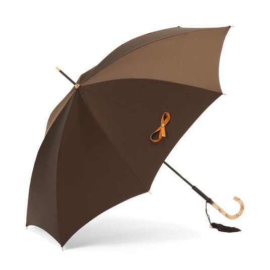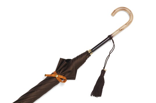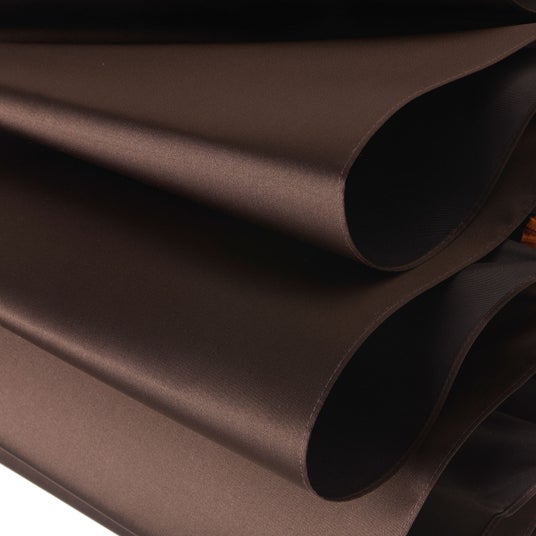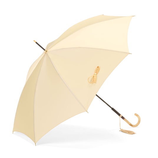 滑らかな光沢を放つサテン生地は、傘生地生産が盛んな山梨県富士吉田市にある、老舗傘生地メーカーで織られました。光をやわらかく反射し、傘を閉じたときに綺麗に生地が垂れるドレープでとろける質感を表現しています。また、熟練の職人による丁寧な仕立ては無駄なしわやたるみを極力抑え、傘を閉じたときも開いた時も美しいシルエットが魅力です。