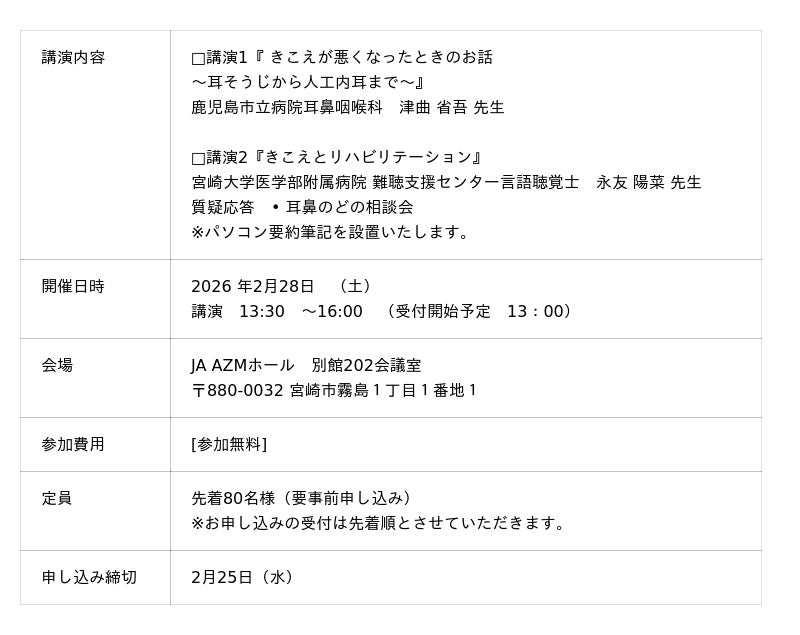 協力:日本補聴器販売店協会九州沖縄支部宮崎県部会