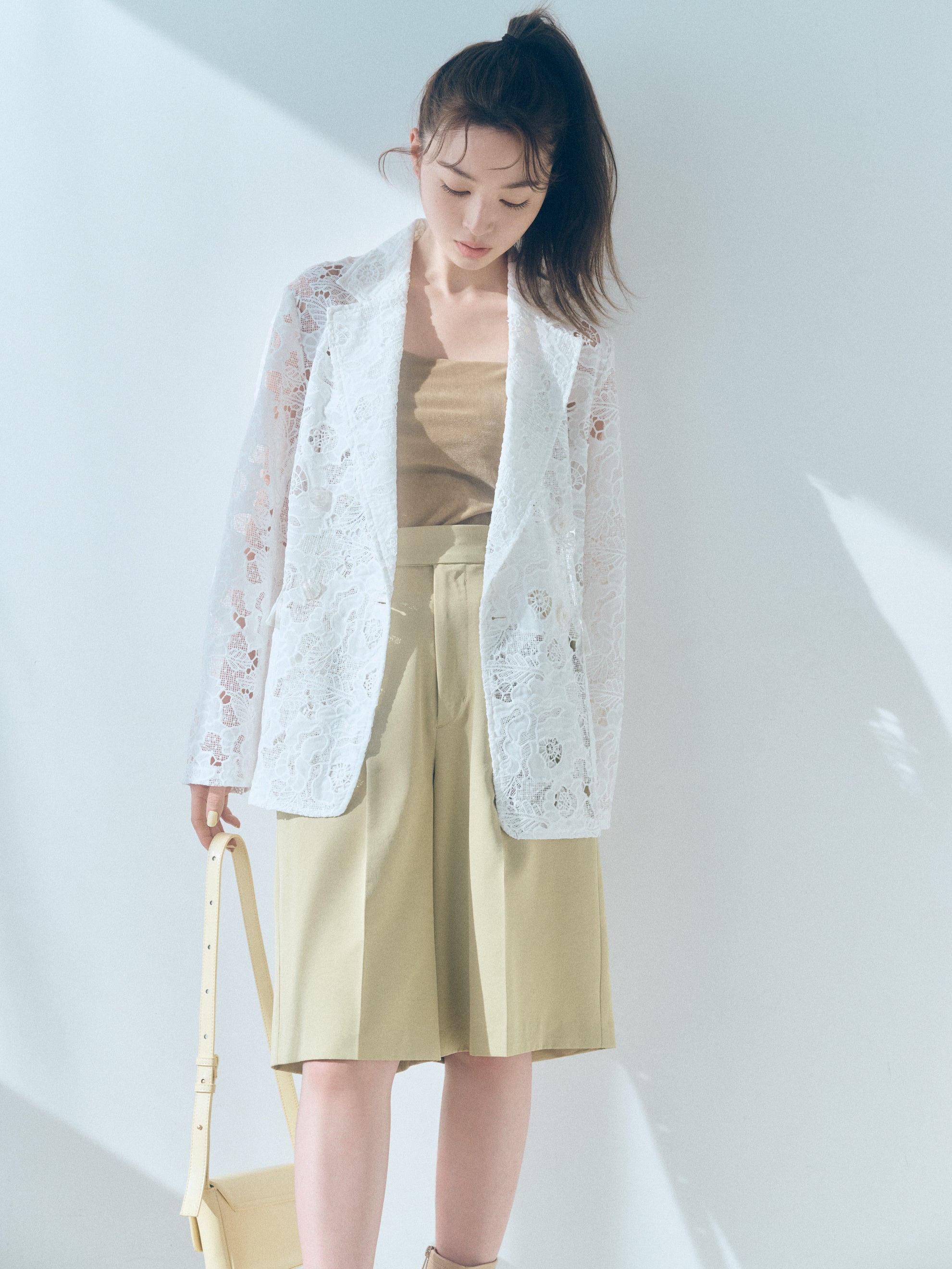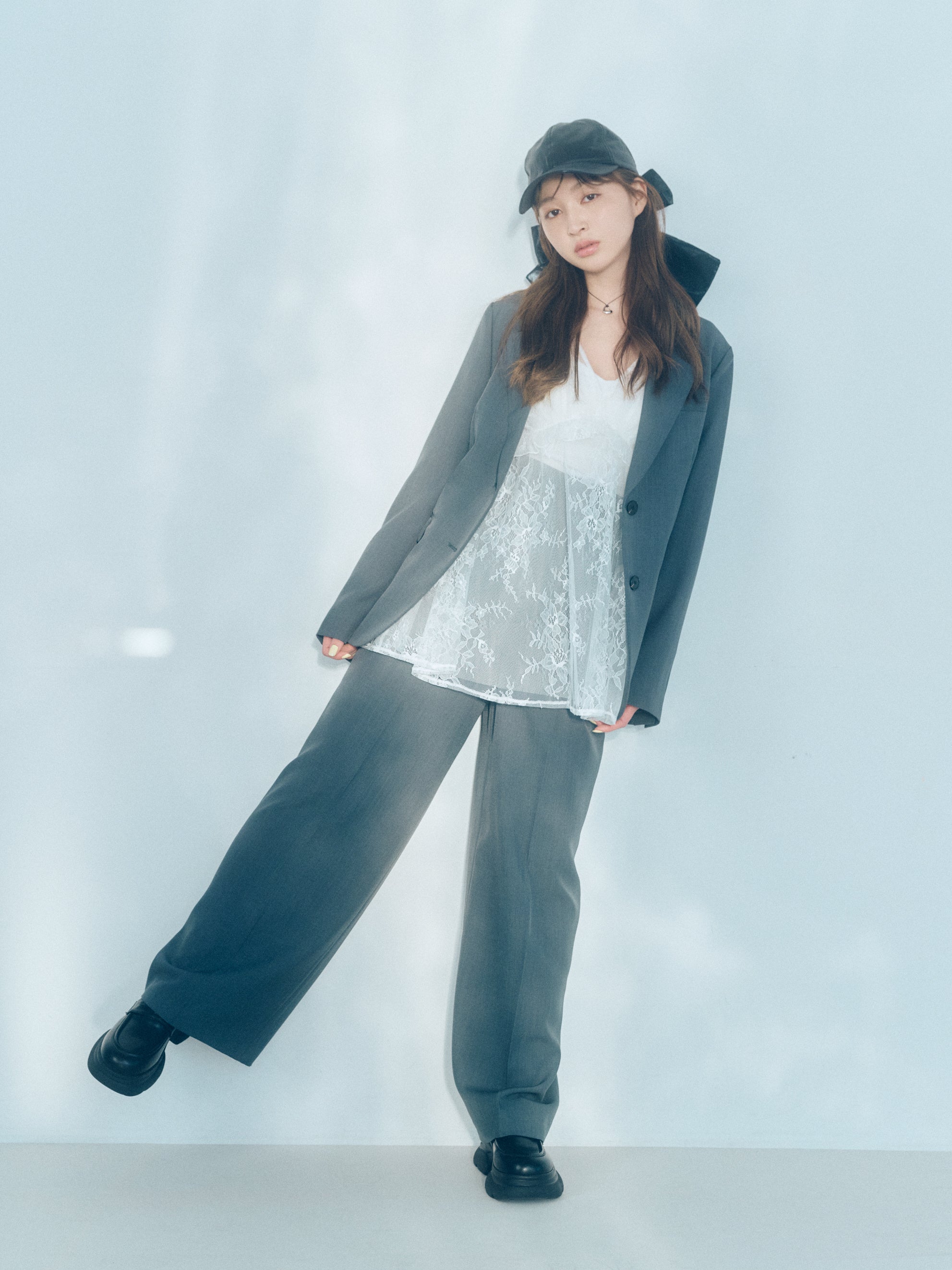 JACKET ¥24,200/ CAMISOLE ¥4,950/ PANTS ¥10,450