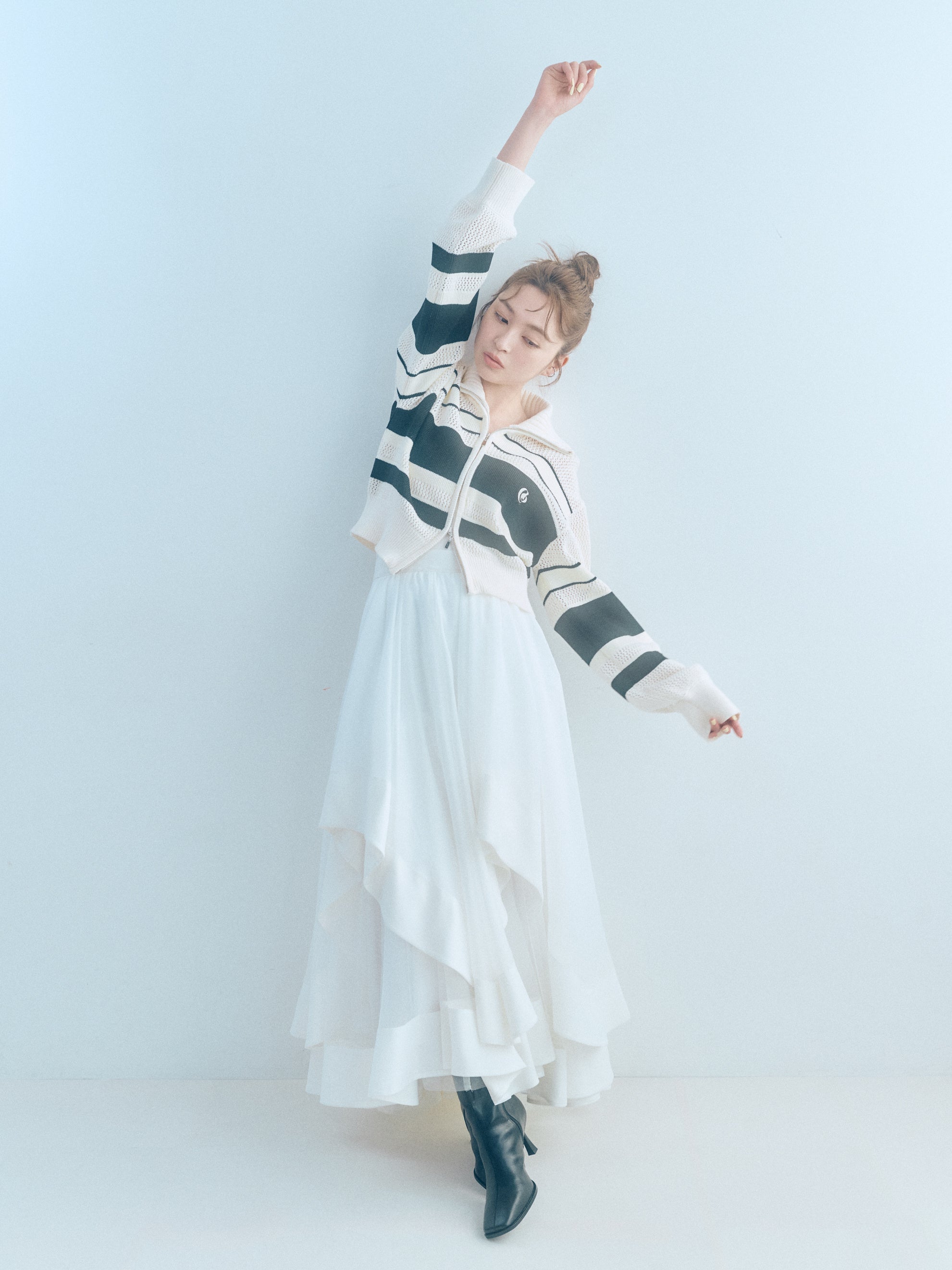 KNITBLOUSON ¥12,100/ SKIRT ¥15,400