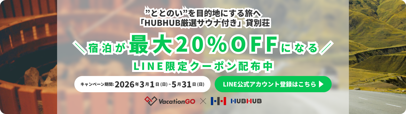 本プロジェクトでは、HUBHUB会員34,000名超に向け、SOZONEXTが運営する「VACATION GO」掲載施設の中から、HUBHUBが認定したサウナ付き別荘を厳選し、LINEを通じて特別割引や会員限定特典を提供します。