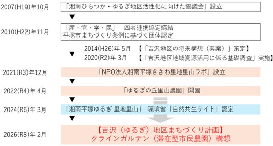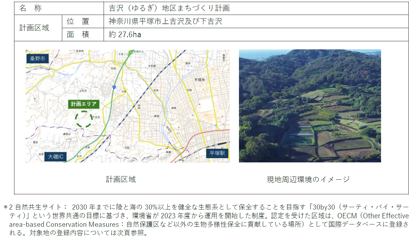 本計画申請時の詳細については、2025年9月8日付プレスリリース「平塚市まちづくり条例に基づく『吉沢(ゆるぎ)地区まちづくり計画』の申請について」をご参照ください。