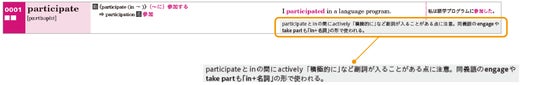 「単語の意味を覚えても、どう使えばいいのかわからない……」という悩みにも応えることができます。例文の下に使い方や発音、類語の使い分けなど豊富な解説が掲載されているため、意味を覚えた後は、スピーキングやライティングで使うための足がかりとなります。
